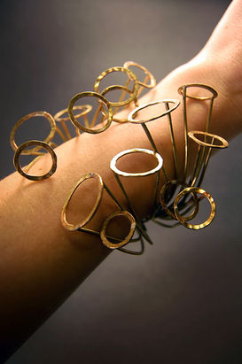 This piece of art and carefully designed bracelet symbolizes the direct relationship we have with our natural environment. Our actions affect the natural world, and the natural world will respond in ways that will ultimately affect us. There must be balance between the two worlds in order for both worlds to thrive. The individual bangles of the bracelet intertwine to create an organic arrangement constantly adapting to its environment and changing based upon the movement of the individual wearing it.